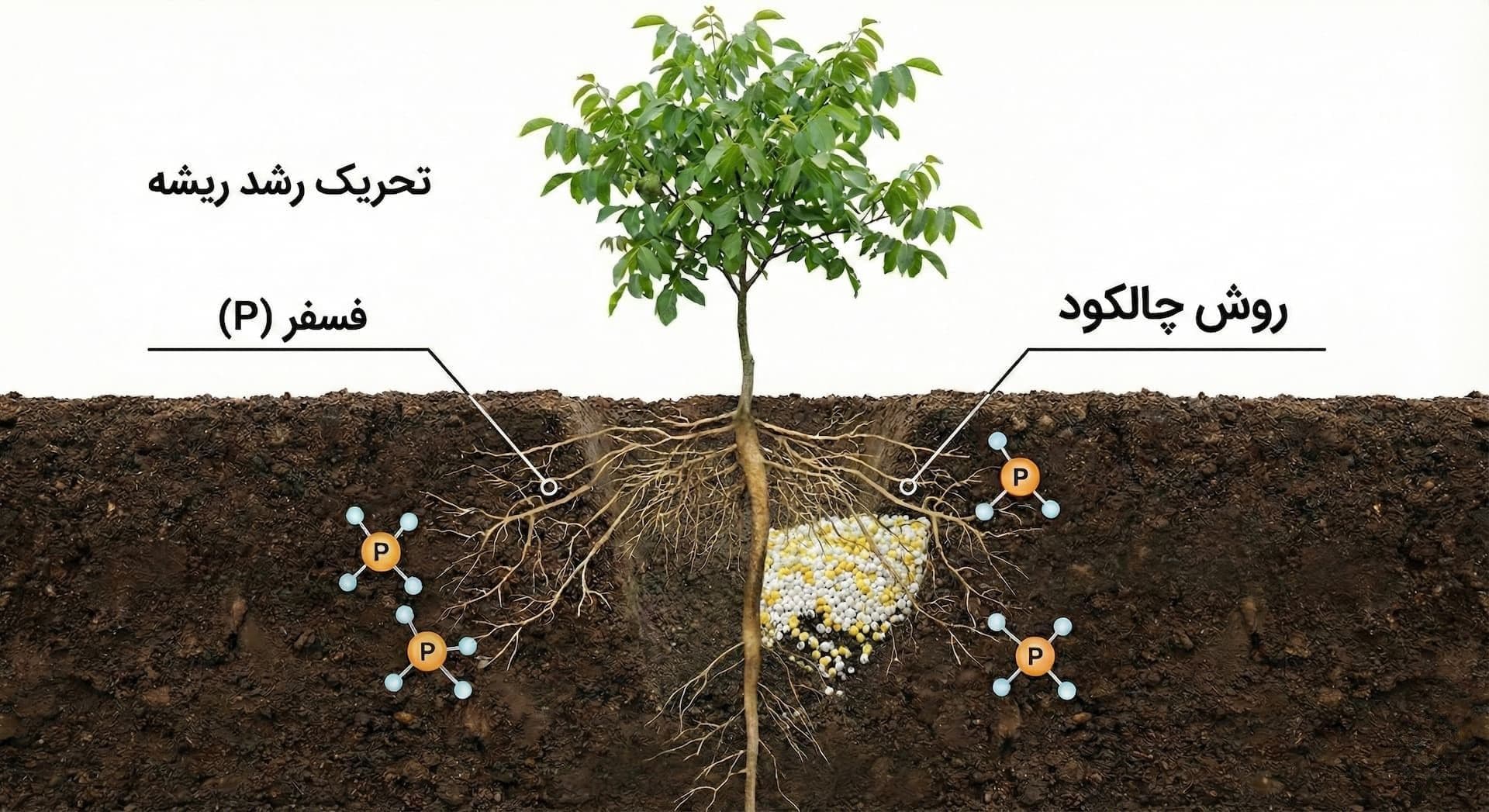 بهترین کود، کودی است که در دسترس این ریشهها قرار گیرد. برای تغذیه ریشههای عمیق، تنها راهکار «چالکود زمستانه» است. کودهای فسفاته و پتاسه و دامی باید در عمق سایهانداز (جایی که ریشههای موئین فعال هستند) دفن شوند. در این مرحله استفاده از کود گوگردی بسیار حیاتی است، زیرا با اسیدی کردن خاکهای آهکی، راه جذب مواد غذایی را برای ریشه باز میکند. برای ریشههای سطحی و افشان، استفاده از «کودهای محلول در آب» (در سیستم آبیاری) در طول فصل رشد ضروری است.