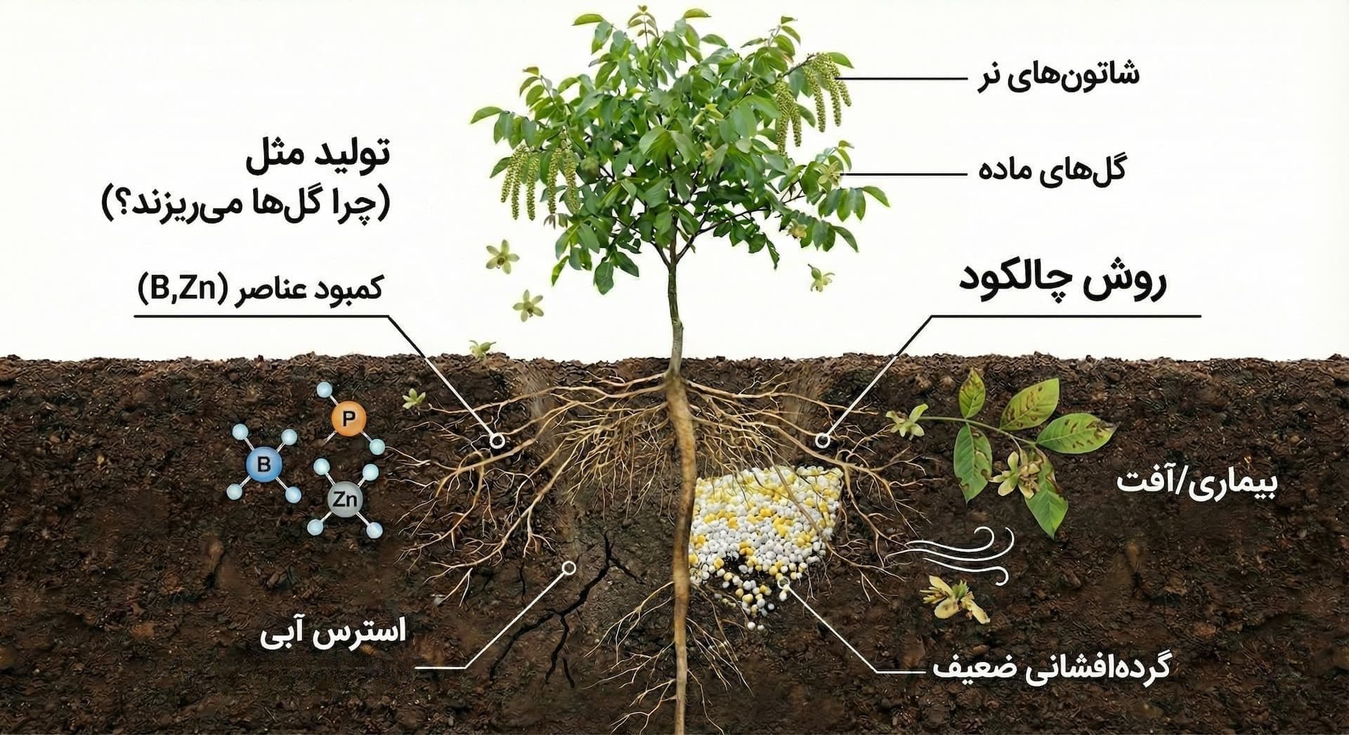 برای اینکه بدانیم بهترین کود چیست، ابتدا باید خودِ درخت گردو، ریشههایش و نوع باردهی آن را بشناسیم. بیایید به جای خرید کورکورانه کود، به فیزیولوژی درخت نگاه کنیم: