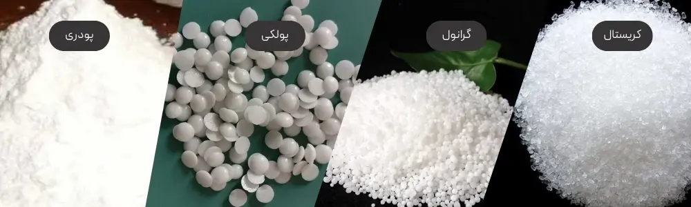 معمولاً در دو نوع اصلی عرضه میشود: 1- تأمین همزمان نیتروژن و کلسیم: نیترات کلسیم حاوی 15.5% تا 16% نیتروژن و 18% تا 20% کلسیم است که علاوه بر برطرف کردن نیاز به کلسیم، نیتروژن را هم تامین میکند. 2- جلوگیری از بیماریها: کمبود کلسیم میتواند منجر به بیماریهایی
